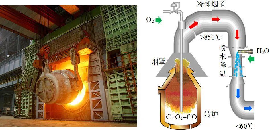 中国科学院力学所魏小林团队:转炉煤气全干法显热回收节能新技术发表时间:2025-12-29 10:28 目前我国每年粗钢产量达到10 亿t 规模,超过世界钢产量的50%,其中80%为转炉冶炼。转炉炼钢作为钢铁冶金的核心工艺,通过氧气顶吹铁水进行脱碳,产生大量高温煤气(可达1500℃以上),存在大量余能、余热。转炉煤气具有间歇性、多尘性、爆炸性等特点,煤气中低温(850℃以下)余热一直难以高效利用,导致转炉煤气浪费50%以上的能源。2021 年,国家发展改革委等五部门公布《冶金、建材重点行业严格能效约束推动节能降碳行动方案(2021-2025 年)》,要求到2025 年,通过在钢铁等行业实施节能降碳行动,不断增加转炉工序能效达到标杆水平(–30kgce/t)的产能比例,明显降低碳排放强度。 ![]() ▲ 转炉喷水/水雾降温工艺 转炉间歇性剧烈吹氧的工作过程决定了煤气具有多尘性、爆炸性、波动性等三个特点,因此在目前的转炉工艺中,煤气经过汽化冷却烟道降温至850℃左右不得不采用喷水/水雾的降温方式(图1.16),导致850℃以下的显热资源完全浪费。 在日本OG 法、德国LT 法等转炉烟气净化及回收的基础上,我国从20 世纪70 年代就开始了转炉煤气的余热利用技术研发工作,到80 年代国内许多转炉通过汽化冷却烟道余热锅炉回收了高温煤气(1500℃以上)的显热并产生蒸汽,但是国内外一直没有利用转炉煤气中低温(850℃以下)显热的成熟技术。在20 多年前,我国冶金行业的专家就开始探讨转炉煤气全部显热回收的问题,推动了此领域的技术进步,中国科学院力学研究所一直参与转炉煤气爆炸方面的技术研发工作。2006 年后,作者在国家863 目标导向类课题、中国科学院节能减排重点项目与战略性先导科技专项(A 类)课题以及4 项国家自然科学基金项目的支持下,开展了实验研究、中试研究和现场示范等研发工作,实现了转炉煤气全干法显热回收技术的实际应用。 ▋转炉煤气全干法显热回收节能新技术 中国科学院力学研究所针对以上转炉煤气显热回收的三个难点,提出研发转炉煤气高温除尘、全干法显热回收及放散煤气催化燃烧等技术,彻底取消转炉OG法和LT 法原有的喷水/水雾降温工艺及低热值煤气放散方式,形成转炉煤气全干法显热回收节能新工艺。2021 年8 月,中国科学院力学研究所科研团队在内蒙古包钢钢联股份有限公司一台100t 转炉上成功进行了转炉全干法工艺的集成示范,实现超过168h 的连续稳定运行,当月累计炼钢量约600 炉。该技术的应用,能够帮助钢铁企业在转炉炼钢过程中实现吨钢额外产蒸汽60kg 以上,经济效益和社会效益显著。